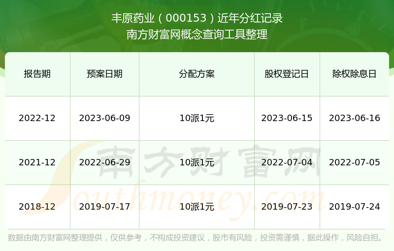 豐原藥業(yè)最新一次公布的分紅方案為10派1元。本次權(quán)益分派股權(quán)登記日為2023年6月15日,除權(quán)除息日為2023年6月16日,派息日為2023年6月16日。